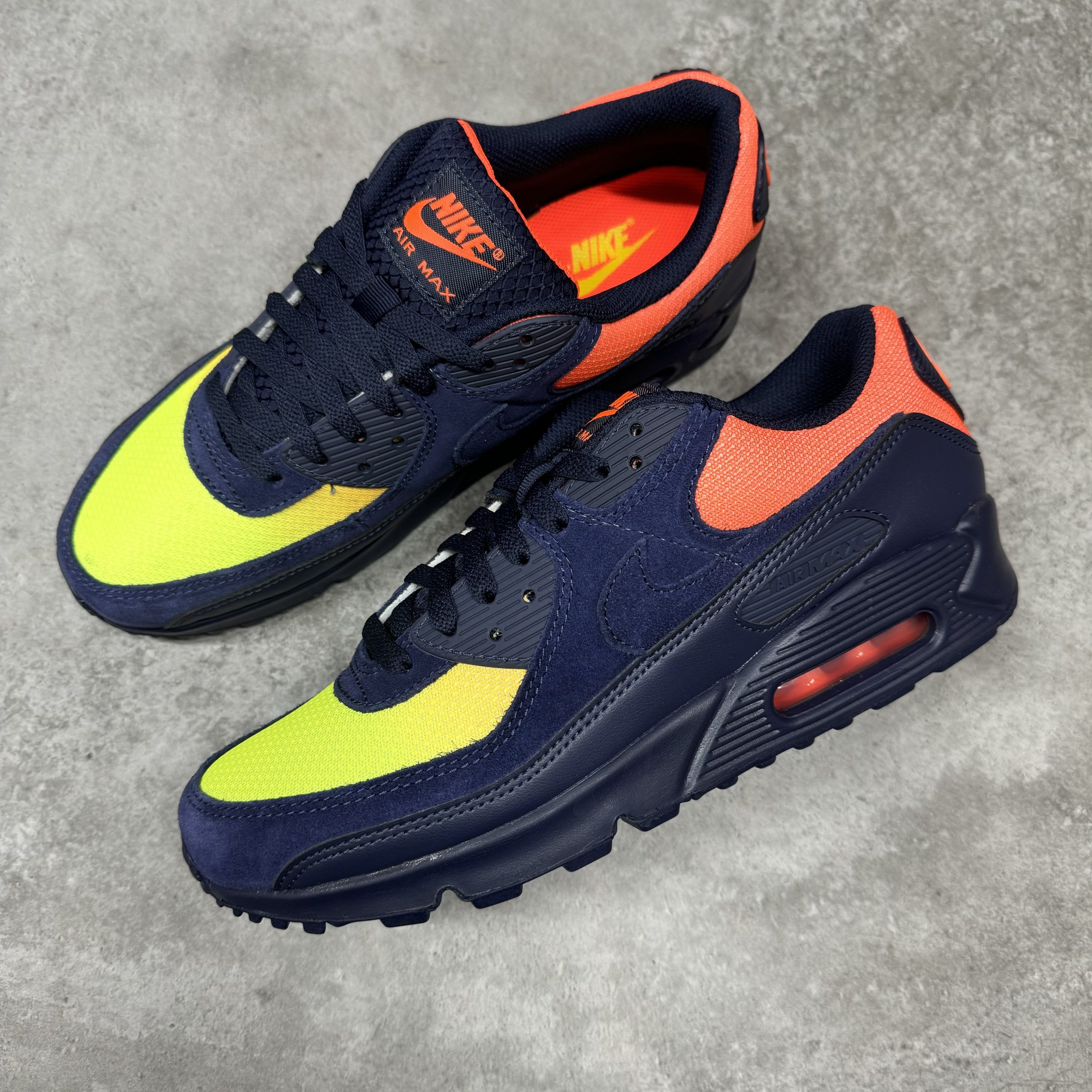 Model: Nike Air Max 90 – Blackened Blue Lemon Hyper Crimson