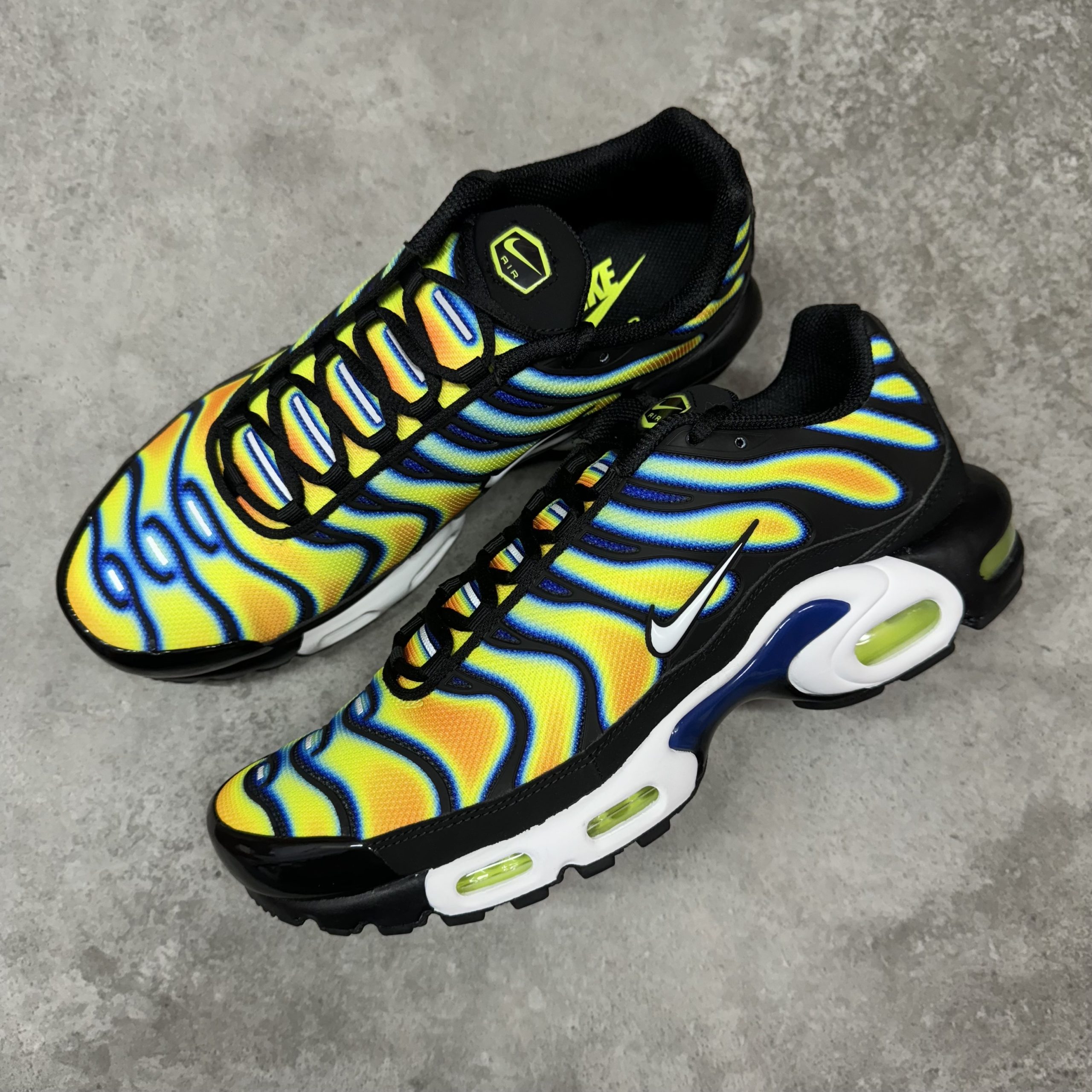 Brand : Nike Model : Air Max Plus TN – Heat Map Condition: Brand New Stylecode : Ih4458-001 Year : 2025 Colour : Yellow/Blue/Black/White Gender : Mens Box : With Original Box